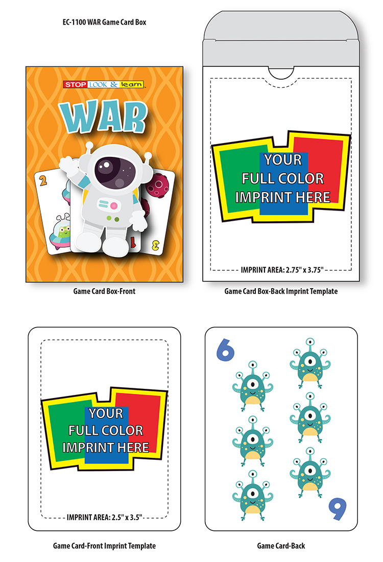 NEW! Flash Card Game Set - War. Boxed set of 36 Game Cards in fully customizable card box. Enjoy the classic card game with children and friends alike. Recommended for children ages 3 and up. This product is also ideal for schools, libraries and educations programs for young learners.