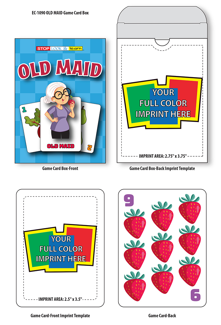 NEW! Flash Card Game Set - Old Maid. Boxed set of 36 Game Cards in fully customizable card box. Enjoy the classic card game with children and friends alike. Recommended for children ages 3 and up. This product is also ideal for schools, libraries and educations programs for young learners.